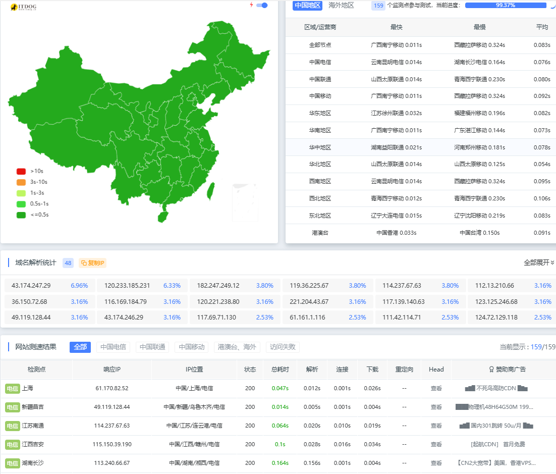 等待缓存完成后,即可测试效果,/archives/* 参数直接影响了测速结果,尽量从cdn拉取的话速度最快,该参数的TTL时间需要自行平衡,如果你的文章内容频繁更新,那么则将TTL值该小,反之则该大
