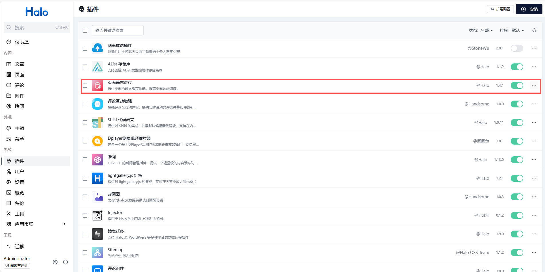 首先后台要启用页面静态缓存
